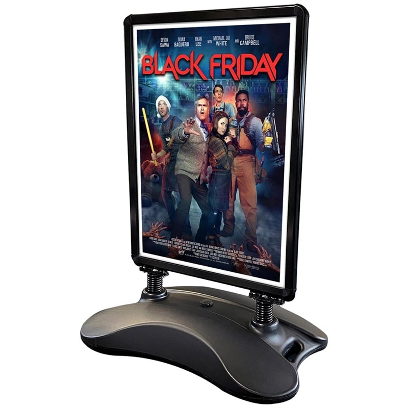 Gadeskiltet har en 32 mm ALU klapramme med pæne afrundede hjørner. Frontpladerne er lavet i antirefleks APET. Skiltet har to fjedre der er behandlet mod rust. De er med til at give skiltet fleksibilitet, så det ikke b