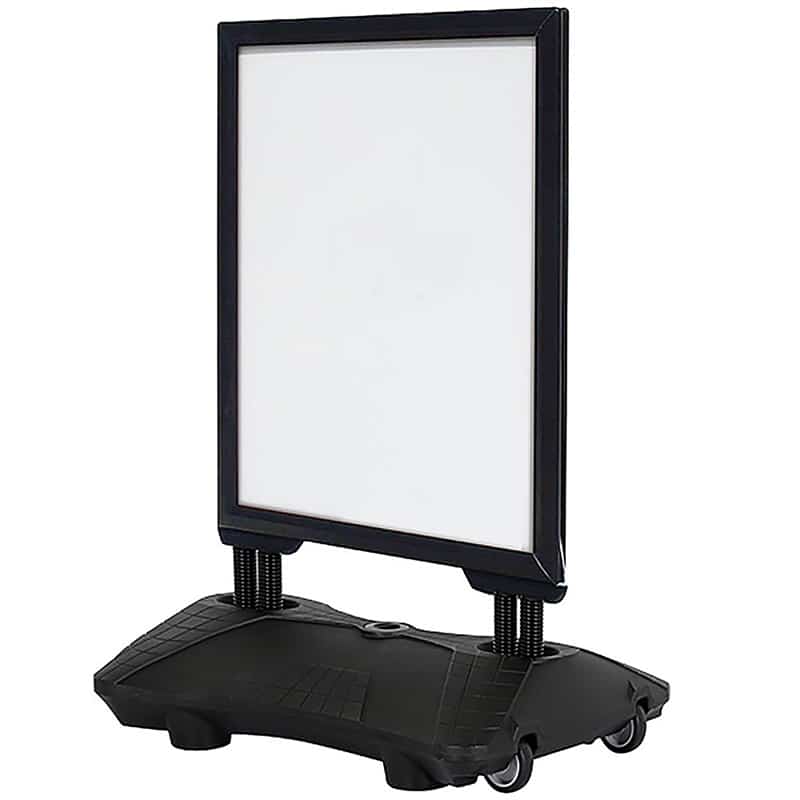 Wind-Sign Waterbase Budget har en 40 mm alu klapramme, der er skåret i gering, med afrundede hjørner. Frontpladen er lavet af antirefleks APET. For at beskytte din plakat mod indtrængning af vand har Wind-Sign Waterba